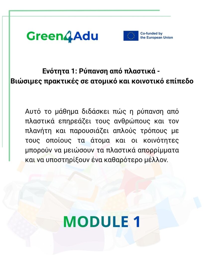Από τη ρύπανση των πλαστικών έως τις πράσινες δεξιότητες, η Πλατφόρμα Moodle του ευρωπαϊκού έργου Green4ADU αποτελεί ένα πολύτιμο εργαλείο για εκπαιδευτές και εκπαιδευόμενους.
