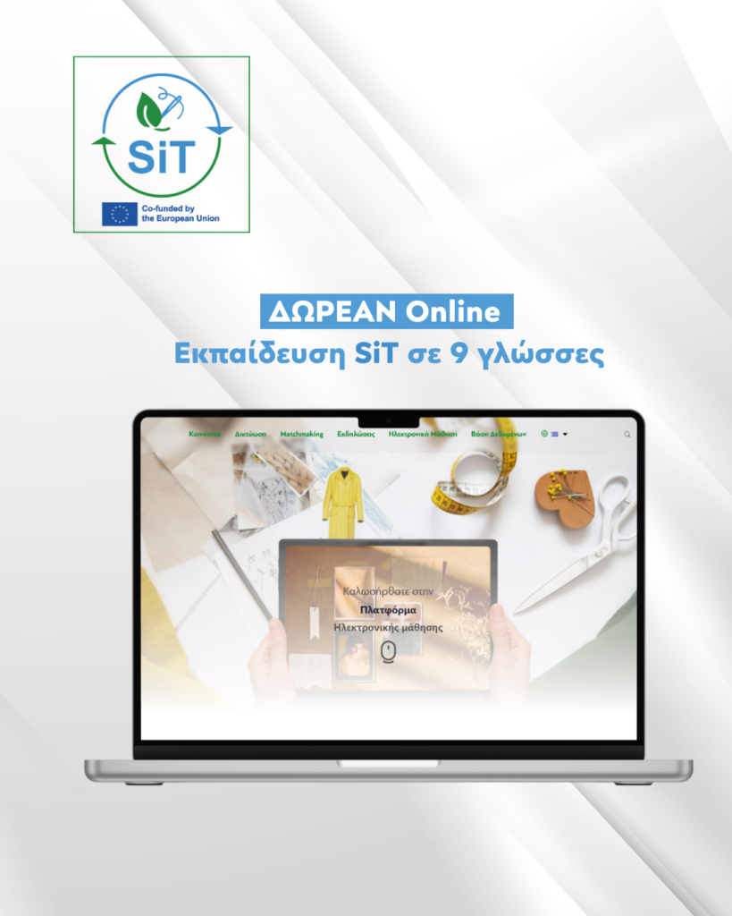 Με χαρά ανακοινώνουμε ότι τα ΔΩΡΕΑΝ online εκπαιδευτικά προγράμματα του έργου SiT είναι πλέον προσβάσιμα σε 9 ευρωπαϊκές γλώσσες, ενισχύοντας την ένταξη και την προσβασιμότητα στη βιώσιμη εκπαίδευση για τους τομείς TCLF (Textile, Clothing, Leather & Footwear).