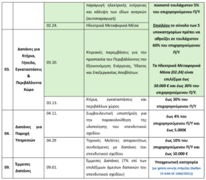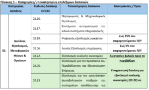 9. Η αίτηση χρηματοδότησης να περιέχει δαπάνες που συνδέονται με τις υποκατηγορίες που χαρακτηρίζονται ως «διεργασίες φιλικές προς το περιβάλλον» και να τηρούνται τόσο κατά την υποβολή της αίτησης όσο και κατά την ολοκλήρωση του επενδυτικού σχεδίου τα σχετικά ελάχιστα ποσοστά που περιγράφονται στον Πίνακα 1 της Ενότητας 6.1. Επιλέξιμες Δαπάνες.