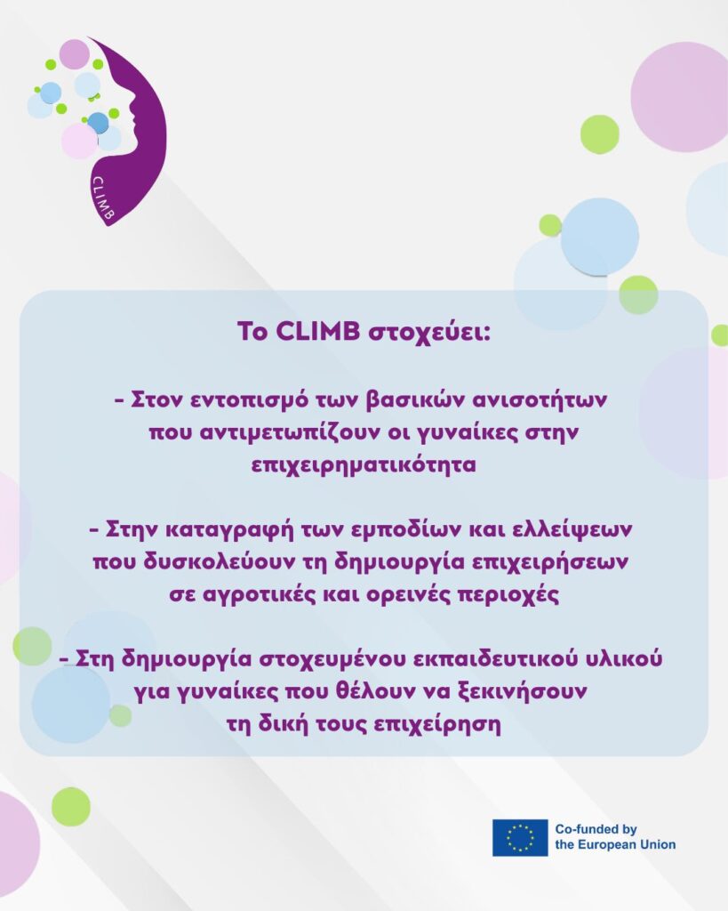 Μάθετε περισσότερα για το έργο εδώ: https://www.oecon.gr/symmetochi-se-ereynitika-programmata/ta-ereynitika-programmata-mas/energa-programmata/climb-empowering-women-to-climb-the-entrepreneurial-mountains-in-remote-areas/